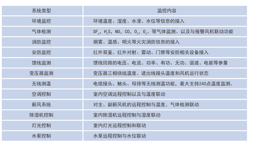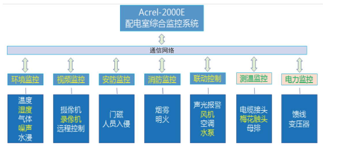 Acrel-2000E配電室綜合監(jiān)控系統(tǒng),可實(shí)現(xiàn)開關(guān)柜運(yùn)行監(jiān)控、高壓開關(guān)柜帶電顯示、電流電壓等負(fù)載運(yùn)行監(jiān)測、母線及電纜測溫監(jiān)測、環(huán)境溫濕度監(jiān)測、有害氣體監(jiān)測、安防監(jiān)控,可對燈光、風(fēng)機(jī)、除濕機(jī)、空調(diào)控制等設(shè)備進(jìn)行聯(lián)動控制。實(shí)現(xiàn)動力環(huán)境各數(shù)據(jù)的檢測與設(shè)備控制,優(yōu)化動力環(huán)境,避免運(yùn)行環(huán)境的失控導(dǎo)致配電設(shè)備運(yùn)行故障,保證維護(hù)人員安全,延長設(shè)備使用壽命,實(shí)現(xiàn)配電動力環(huán)境的分布式遠(yuǎn)程管理。