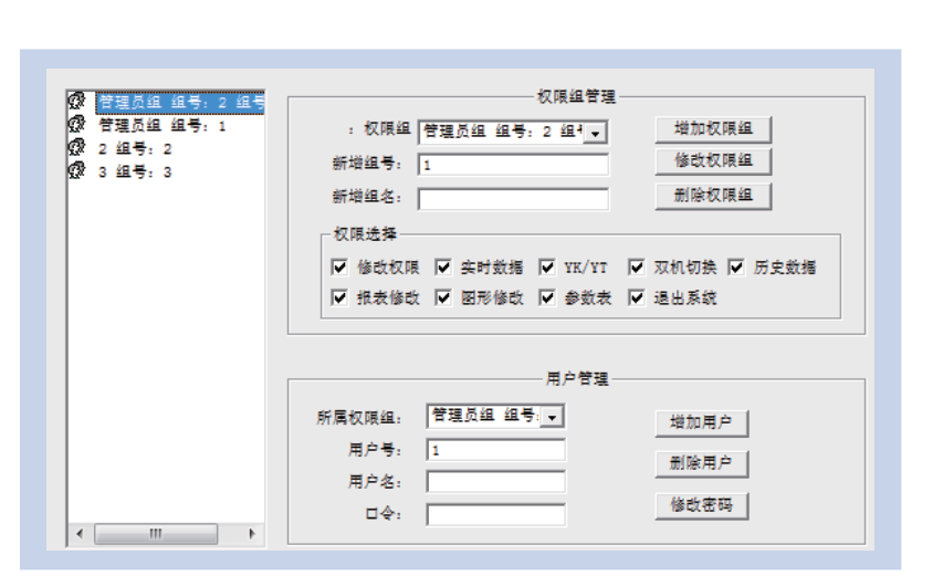 為保障系統(tǒng)安全穩(wěn)定運(yùn)行,設(shè)置了用戶權(quán)限管理功能。通過用戶權(quán)限管理能夠防止未經(jīng)授權(quán)的操作(如遙控的操作,數(shù)據(jù)庫修改等)。可以定義不同級別用戶的登錄名、密碼及操作權(quán)限,為系統(tǒng)運(yùn)行維護(hù)、管理提供可靠的安全保障。