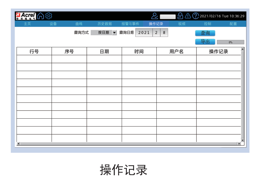 進(jìn)入“操作記錄”界面可以查看不同用戶到目前為止的操作及時間。并且可以根據(jù)所選擇的不同查詢方式進(jìn)行不同方式的查詢功能。