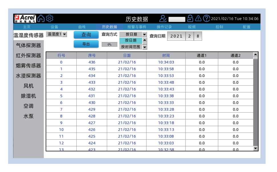 (2)按時間范圍查詢表示查詢某一個時間段內(nèi)的歷史數(shù)據(jù),查詢格式為年/月/日/時/分/秒;
