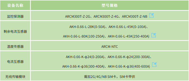 注:以上配置為針對一個回路的產品選型,剩余電流互感器和電流互感器根據實際額定電流選配。